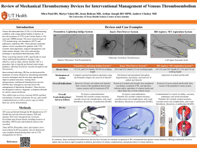 Material and Methods: MT cases performed through the IR department at UT Health San Antonio between January 2020 and January 2024 were retrospectively reviewed. Procedural and clinical details including location of thrombus, MTD used, and technical success were recorded. Device details and case examples demonstrating their role in VTE management are shown.